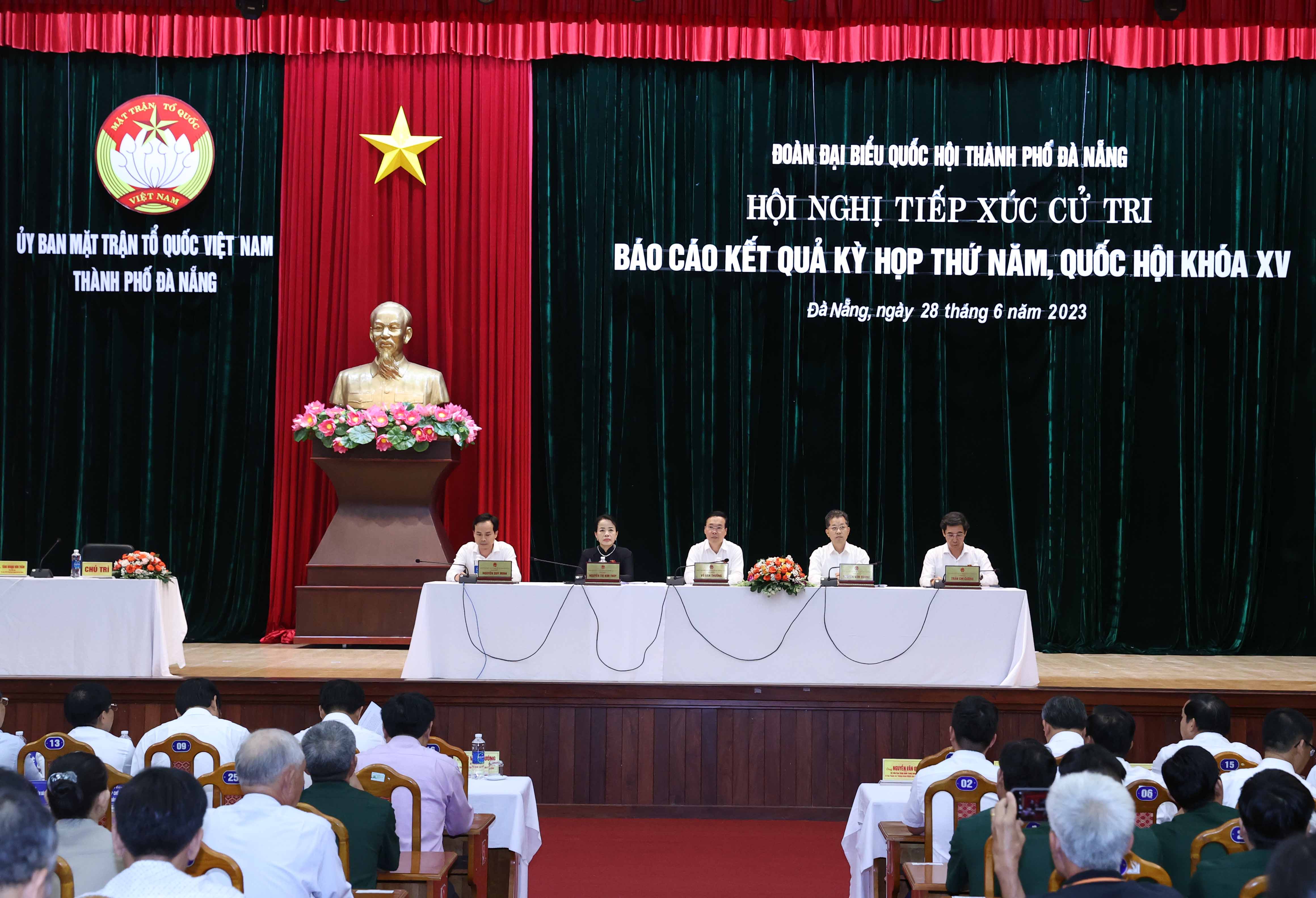 Tại buổi tiếp xúc, các cử tri thành phố Đà Nẵng đánh giá cao kết quả Kỳ họp thứ 5, Quốc hội khóa XV, đã tham gia giải quyết, thông qua nhiều nội dung công việc quan trọng. Các cử tri tin tưởng và đánh giá cao vai trò lãnh đạo của Đảng, Nhà nước trong điều hành phát triển kinh tế - xã hội với những thành tựu quan trọng; đồng thời, bày tỏ sự đồng tình, ủng hộ Đảng, Nhà nước quyết liệt trong công tác phòng, chống tham nhũng.