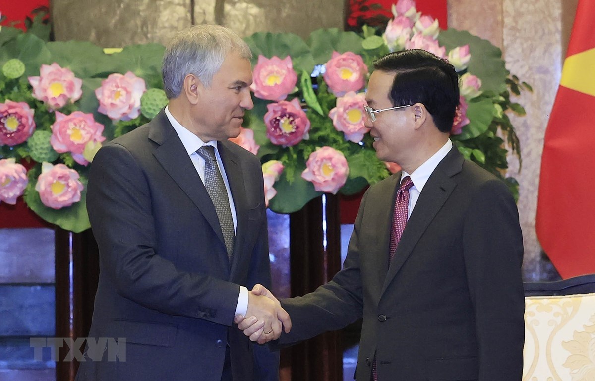 Tại buổi tiếp, Chủ tịch Vyacheslav Vichtorovich Volodin trân trọng gửi lời thăm hỏi của Tổng thống Nga Vladimir Putin tới Chủ tịch nước Võ Văn Thưởng; đồng thời khẳng định, Liên bang Nga không chỉ coi Việt Nam là đối tác chiến lược mà còn là bạn bè chiến lược.