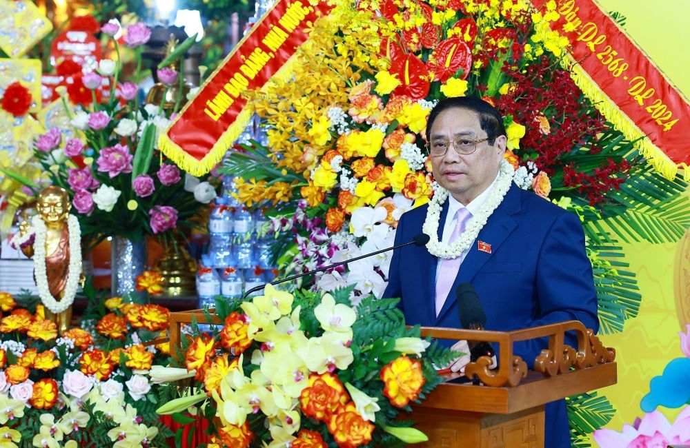 Thay mặt lãnh đạo Đảng, Nhà nước và với tình cảm cá nhân, Ủy viên Bộ Chính trị, Thủ tướng Chính phủ Phạm Minh Chính trân trọng gửi tới chư tôn giáo phẩm Giáo hội Phật giáo Việt Nam, tăng ni, đồng bào phật tử trong và ngoài nước, cùng toàn thể đại biểu lời chúc mừng tốt đẹp nhất; chúc Đại lễ Phật đản Phật lịch 2568 - Dương lịch 2024 của Giáo hội Phật giáo Việt Nam thành tựu viên mãn.