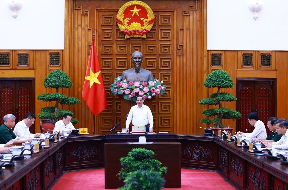 TCCS - Ngày 13-8-2024, tại trụ sở Chính phủ, Ủy viên Bộ Chính trị, Thủ tướng Chính phủ Phạm Minh Chính chủ trì họp với các bộ, ngành; trực tuyến với các tỉnh Nghệ An, Hà Tĩnh về tình hình triển khai Dự án xây dựng đường dây tải điện 500 kV mạch 3 (từ Phố Nối, tỉnh Hưng Yên đến Quảng Trạch, tỉnh Quảng Bình).