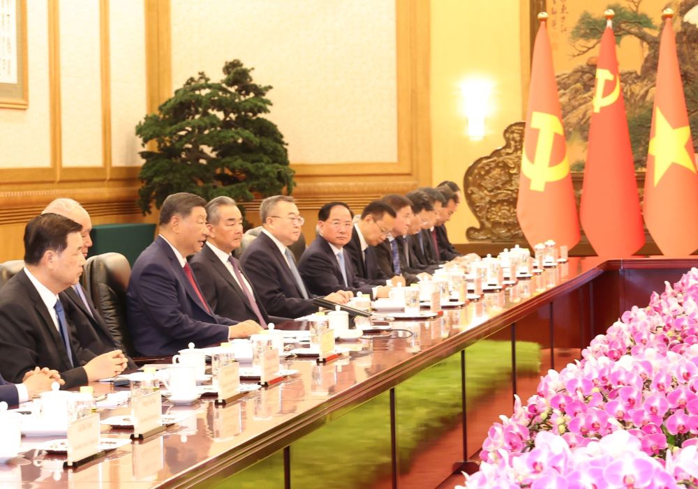 Tổng Bí thư, Chủ tịch nước Trung Quốc Tập Cận Bình nhấn mạnh, chuyến thăm cấp nhà nước đầu tiên đến Trung Quốc, cũng là chuyến thăm nước ngoài đầu tiên của Tổng Bí thư, Chủ tịch nước Tô Lâm trên cương vị người đứng đầu Đảng, Nhà nước Việt Nam có ý nghĩa hết sức quan trọng, thể hiện sự coi trọng cao và ưu tiên hàng đầu của hai đảng, hai nước đối với quan hệ Việt Nam - Trung Quốc; cho rằng đây là thời điểm quan trọng để hai nước đưa quan hệ song phương lên tầm cao mới, đi vào chiều sâu, thực chất trên mọi phương diện. Tổng Bí thư, Chủ tịch nước Trung Quốc Tập Cận Bình khẳng định, Việt Nam là hướng ưu tiên trong chính sách ngoại giao của Trung Quốc; ủng hộ Việt Nam kiên trì sự lãnh đạo của Đảng, thúc đẩy sự nghiệp xây dựng chủ nghĩa xã hội.