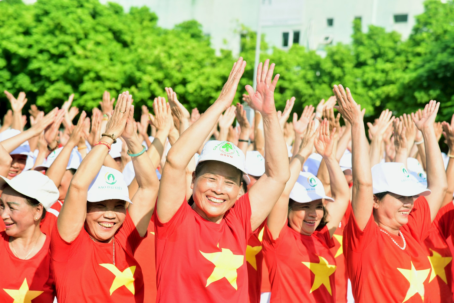 Người cao tuổi trình diễn dân vũ tại Ngày hội sức khỏe người cao tuổi Việt Nam năm 2025 _Nguồn: hanoimoi.vn