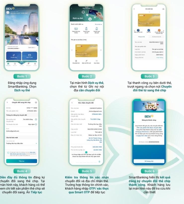 “Giải pháp chuyển đổi thẻ từ sang thẻ chip trực tuyến trên ứng dụng BIDV SmartBanking” là một sản phẩm mới, mang tính dẫn dắt thị trường. Trong thời gian dịch bệnh COVID-19 bùng phát vừa qua, việc chuyển đổi thẻ chip online mang lại nhiều tiện ích cho khách hàng BIDV ngay cả khi khách hàng không thể tới quầy giao dịch.