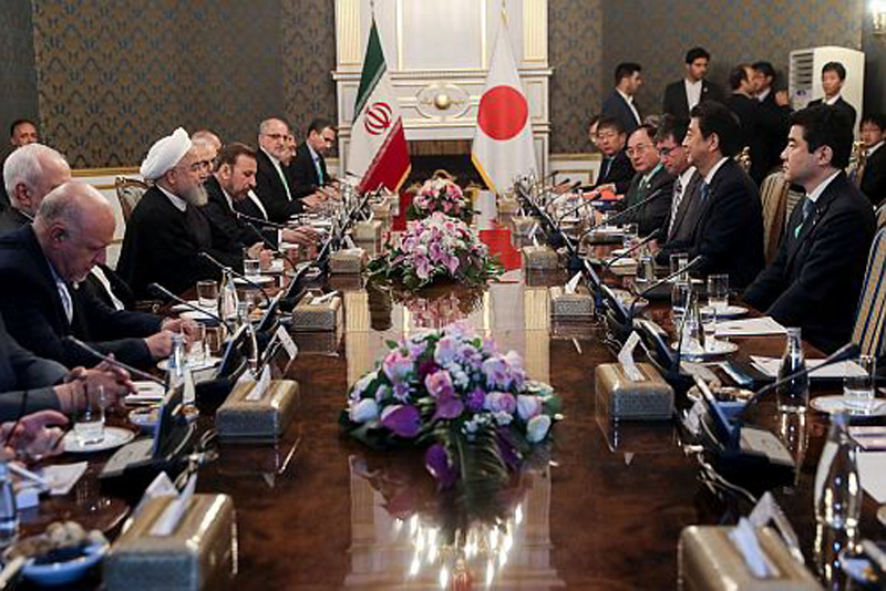 Tại cuộc hội đàm với Tổng thống Iran H. Rouhani, Thủ tướng S. Abe cho rằng Iran cần thể hiện vai trò xây dựng trong duy trì an ninh và ổn định tại khu vực. Thủ tướng S. Abe nhấn mạnh, khu vực Trung Đông cần ngăn chặn nguy cơ xung đột vũ trang bằng mọi giá. Trong bối cảnh đó, Nhật Bản mong muốn giữ một vai trò quan trọng nhằm xoa dịu căng thẳng khu vực, đồng thời đây là ý niệm duy nhất đưa Tokyo xích lại gần hơn với Tehran.