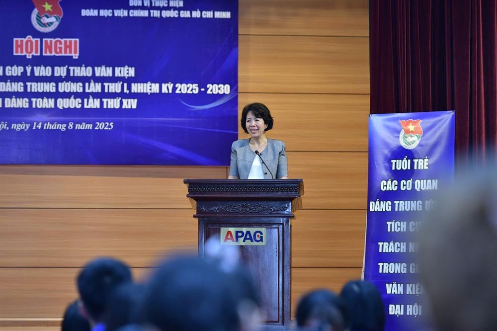 Phát biểu chỉ đạo hội nghị, đồng chí Nguyễn Thị Hoàng Vân, Phó Bí thư Đảng ủy các cơ quan Đảng Trung ương biểu dương tinh thần chủ động những đóng góp của Đoàn Thanh niên các cơ quan Đảng Trung ương không chỉ là một hoạt động có tính chuyên môn, nghiệp vụ, mà quan trọng hơn, nó thể hiện rõ tinh thần tiên phong, bản lĩnh chính trị và ý thức tham gia xây dựng Đảng của thế hệ trẻ. Việc góp ý vào dự thảo văn kiện đại hội Đảng là trách nhiệm chính trị cao cả của mỗi cán bộ, đảng viên, đặc biệt là thế hệ trẻ - những người sẽ trực tiếp góp phần cụ thể hóa các chủ trương, đường lối thành hành động thực tiễn. Do đó, các ý kiến góp ý cần bảo đảm tính lý luận sắc bén, nhưng đồng thời cũng phản ánh thực tiễn khách quan. Nội dung góp ý cần tập trung vào những vấn đề cốt lõi, có tính chiến lược, đang đặt ra yêu cầu cấp thiết hiện nay. Góp ý vào chủ đề đại hội, mục tiêu tổng quát, các định hướng lớn về phát triển kinh tế - xã hội, quốc phòng - an ninh, đối ngoại, xây dựng hệ thống chính trị. Đề xuất các giải pháp về xây dựng, chỉnh đốn Đảng, đổi mới phương thức lãnh đạo của Đảng trong điều kiện mới. Góp ý về việc phát huy dân chủ, xây dựng Nhà nước pháp quyền xã hội chủ nghĩa, xây dựng đội ngũ cán bộ các cấp đủ phẩm chất, năng lực, uy tín, ngang tầm nhiệm vụ. Phân tích và kiến nghị về các nội dung phát triển khoa học - công nghệ, chuyển đổi số, bảo vệ môi trường, thích ứng biến đổi khí hậu, bảo đảm an sinh xã hội. Làm rõ vai trò, vị trí của tổ chức đảng trong các cơ quan Đảng Trung ương, từ góc độ nhiệm vụ chính trị, chức năng tham mưu chiến lược, tổ chức thực hiện chủ trương lớn của Đảng và lan tỏa giá trị cốt lõi của Đảng trong toàn hệ thống chính trị. Những ý kiến góp ý xuất phát từ chính thực tiễn công tác, từ tư duy sắc bén và tinh thần đổi mới sáng tạo của đoàn viên, thanh niên sẽ là chất liệu quý giá làm nên sự phong phú, sâu sắc cho các văn kiện đại hội.