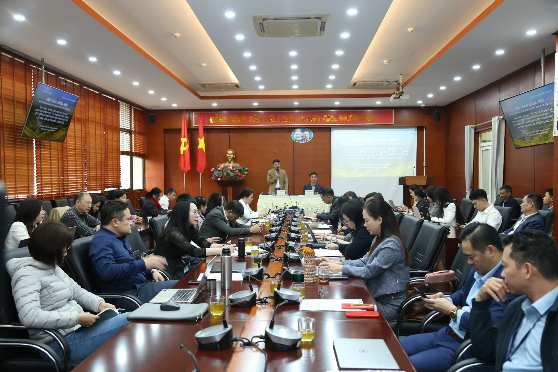 Phát biểu khai mạc hội thảo, PGS, TS Nguyễn Ngọc Hà, Phó Tổng Biên tập Tạp chí Cộng sản, khẳng định: Hệ mục tiêu “Hòa bình, độc lập, giàu mạnh, phồn vinh, văn minh, hạnh phúc” vừa mang giá trị phổ quát của nhân loại, vừa là hệ mục tiêu, tiêu chí và đích đến xuyên suốt của sự nghiệp cách mạng Việt Nam. Mặc dù cùng hướng tới những giá trị chung, song mỗi địa phương, mỗi vùng, miền, mỗi quốc gia đều có những dấu ấn riêng, những con đường và phương thức phù hợp để hiện thực hóa hệ mục tiêu xã hội chủ nghĩa trong những điều kiện lịch sử – cụ thể khác nhau. Trên tinh thần đó, Hội thảo khoa học trên thuộc Đề tài khoa học cấp Bộ trọng điểm được triển khai nhằm tiếp cận, làm rõ những dấu ấn, đặc điểm, yêu cầu và phương pháp đặc thù của từng địa bàn, nhất là khu vực các tỉnh miền núi phía Bắc trong tiến trình xây dựng chủ nghĩa xã hội ở nước ta, coi đây là mốc nghiên cứu có ý nghĩa thiết thực trước thềm Đại hội XIV của Đảng.