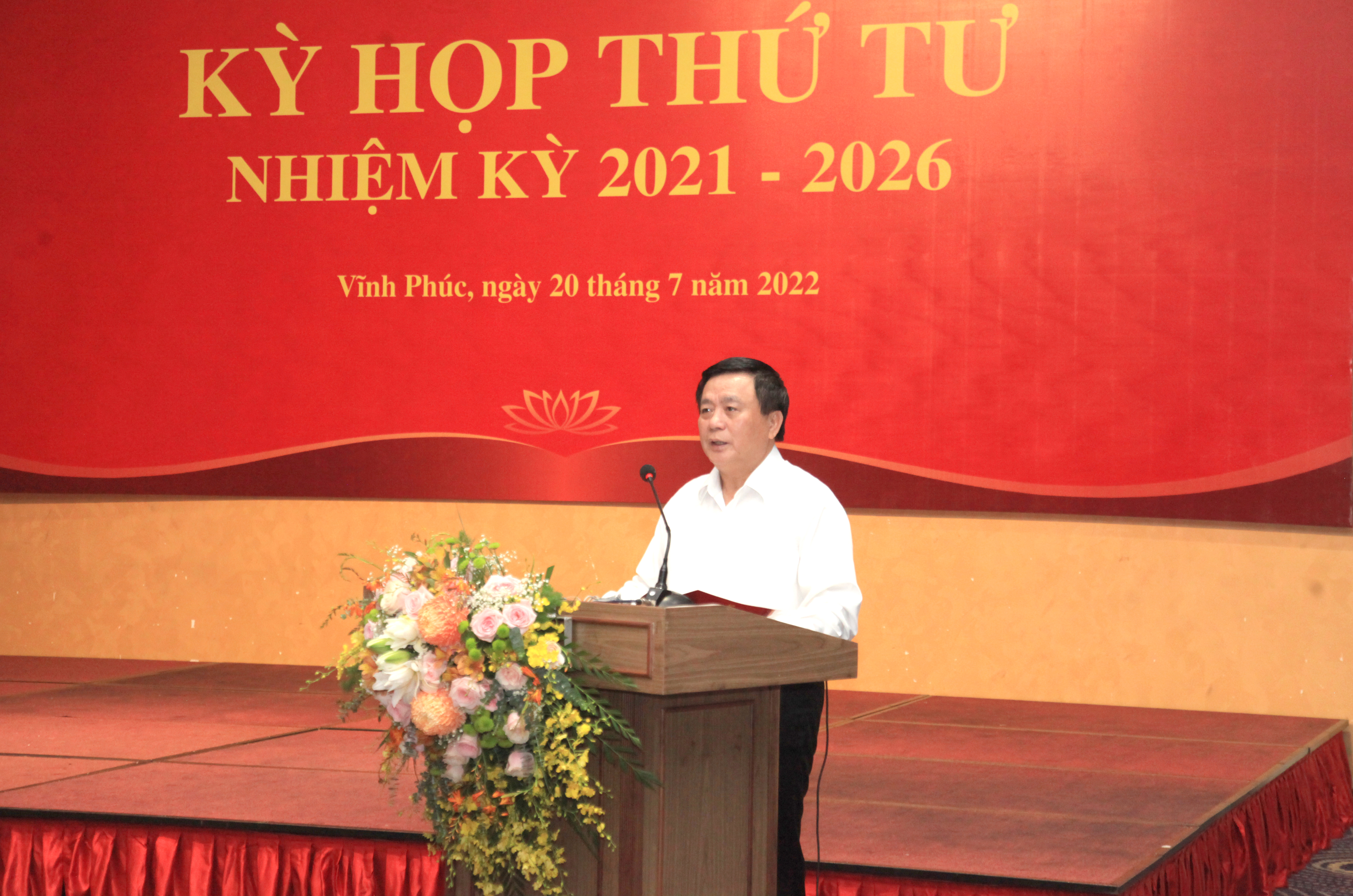 Các đồng chí: GS, TS. Nguyễn Xuân Thắng, Ủy viên Bộ Chính trị, Giám đốc Học viện Chính trị quốc gia Hồ Chí Minh, Chủ tịch Hội đồng Lý luận Trung ương; Hoàng Thị Thúy Lan, Ủy viên Trung ương Đảng, Bí thư Tỉnh ủy, Chủ tịch Hội đồng nhân dân tỉnh, Trưởng Đoàn Đại biểu Quốc hội tỉnh Vĩnh Phúc; GS, TS. Tạ Ngọc Tấn, nguyên Ủy viên Trung ương Đảng, Phó Chủ tịch thường trực Hội đồng Lý luận Trung ương chủ trì kỳ họp.