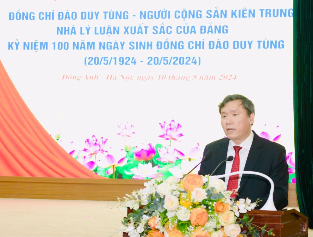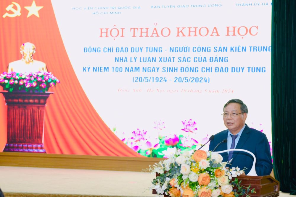 TCCS - Nhân kỷ niệm 100 năm ngày sinh đồng chí Đào Duy Tùng (20-5-1924 - 20-5-2024), ngày 10-5-2024, tại huyện Đông Anh, thành phố Hà Nội - quê hương của đồng chí Đào Duy Tùng - Học viện Chính trị quốc gia Hồ Chí Minh, Ban Tuyên giáo Trung ương và Thành ủy Hà Nội phối hợp tổ chức Hội thảo khoa học với chủ đề: “Đồng chí Đào Duy Tùng - Người cộng sản kiên trung, nhà lý luận xuất sắc của Đảng”.