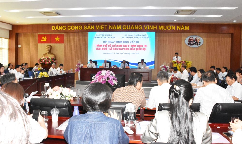 TCCS - Ngày 14-5-2024, Cơ quan Thường trực Tạp chí Cộng sản tại miền Nam và Học viện Cán bộ Thành phố Hồ Chí Minh phối hợp tổ chức Hội thảo khoa học cấp bộ: “Thành phố Hồ Chí Minh sau 1 năm thực thi Nghị quyết số 98/2023/QH của Quốc hội”.