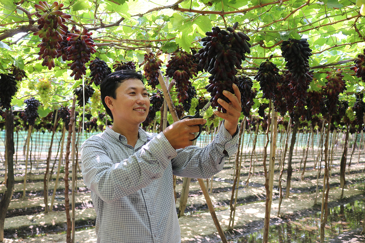 Mô hình trồng giống nho ngón tay đen không hạt chất lượng cao tại xã Nhơn Sơn, huyện Ninh Sơn, tỉnh Ninh Thuận_Ảnh: TTXVN