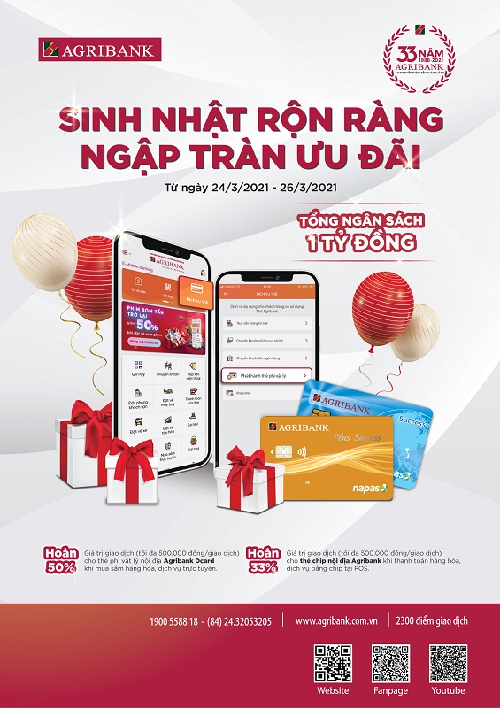 Agribank khuyến mại lớn mừng sinh nhật lần thứ 33