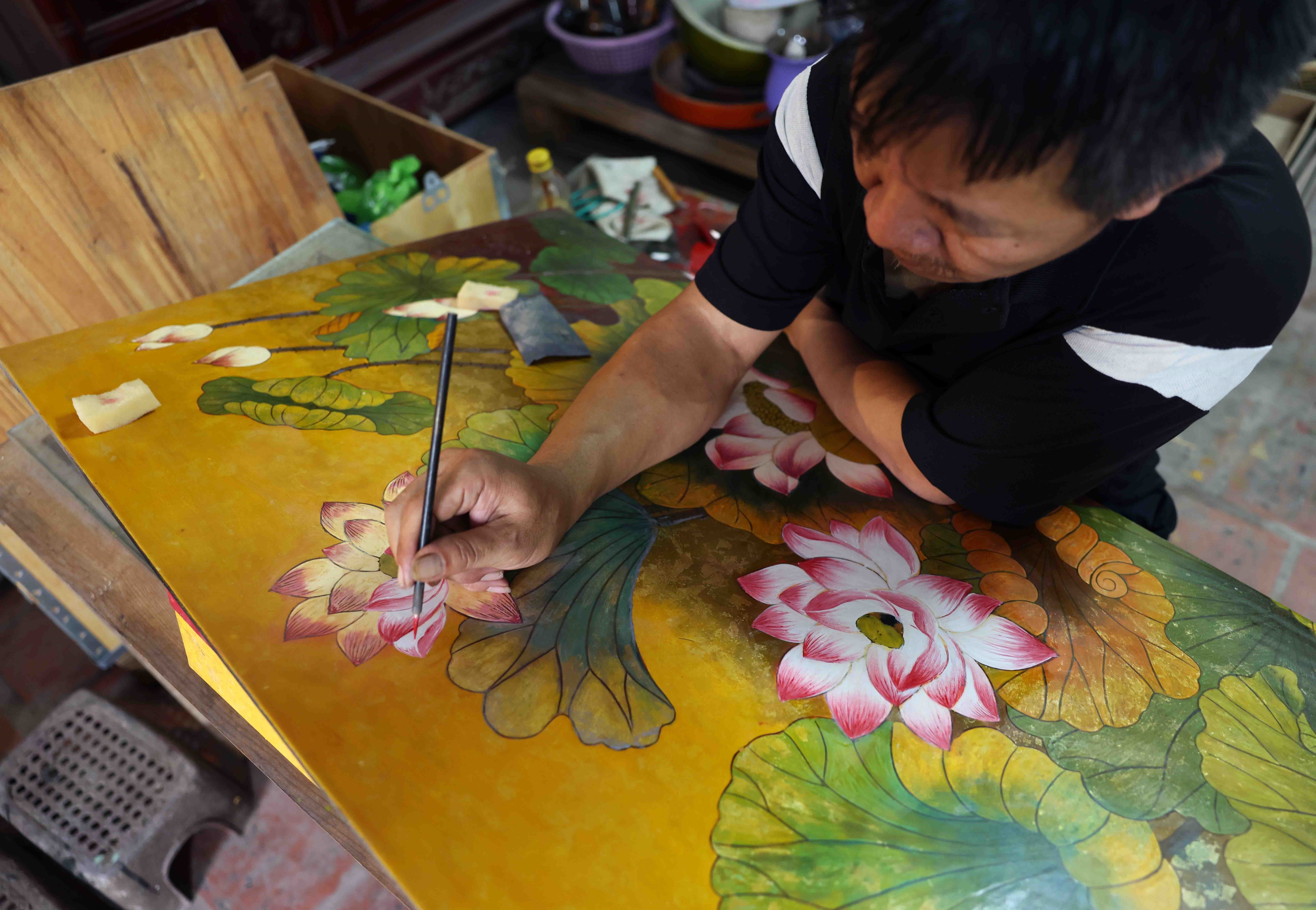 Sản xuất đồ sơn mài ở làng nghề sơn mài Hạ Thái (Hà Nội)_Ảnh: TTXVN