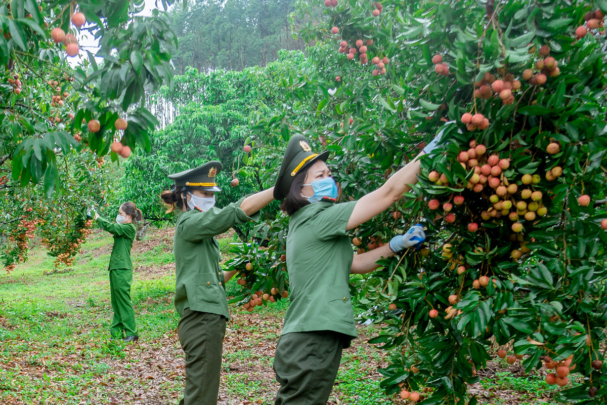 Cán bộ, chiến sĩ thuộc lực lượng Công an tỉnh Bắc Giang tích cực giúp nông dân thu hoạch vải thiều, khắc phục khó khăn do dịch bệnh_Nguồn: baobacgiang.com.vn