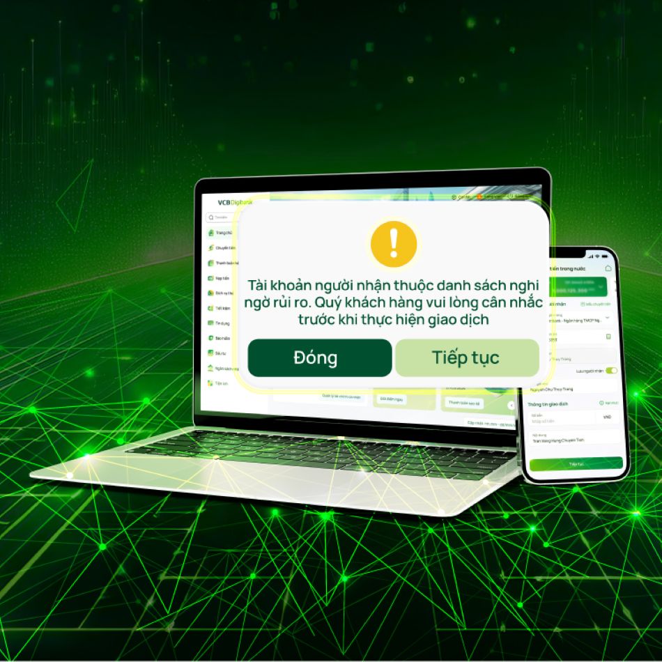 Vietcombank mở rộng tính năng cảnh báo tài khoản nhận tiền có dấu hiệu nghi ngờ gian lận, lừa đảo