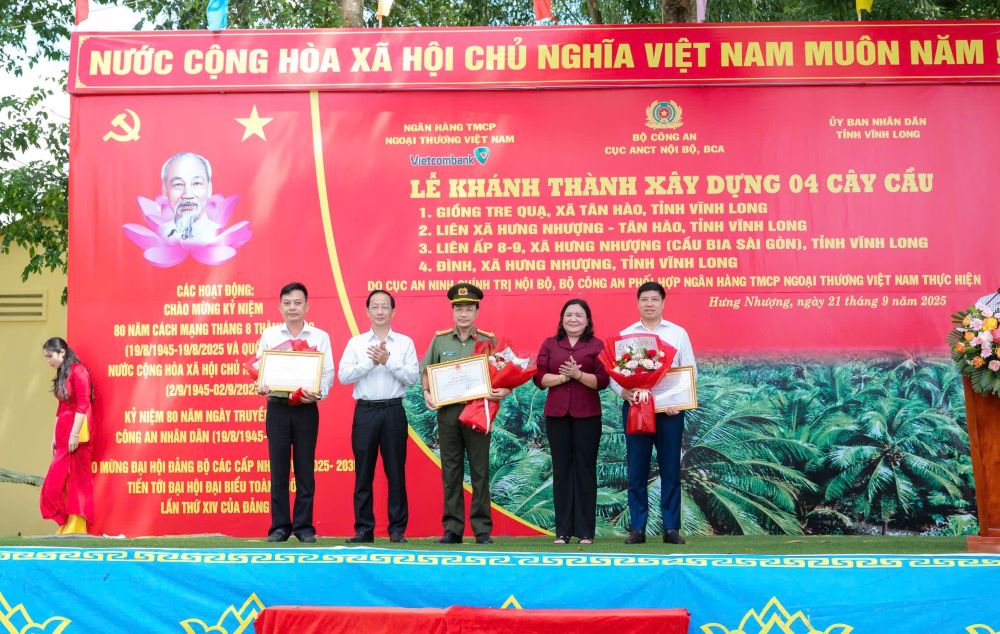 Trong những năm qua, Vietcombank luôn quan tâm, dành nguồn lực cho các hoạt động an sinh xã hội. Riêng trong lĩnh vực xây dựng cầu, đường nông thôn, Vietcombank đã và đang đồng hành cùng nhiều địa phương trên cả nước, góp phần hoàn thiện kết cấu hạ tầng, nâng cao đời sống nhân dân. Sự kiện khánh thành 4 cây cầu tại Vĩnh Long tiếp tục khẳng định cam kết của Vietcombank trong việc thực hiện trách nhiệm xã hội doanh nghiệp, đồng hành cùng Chính phủ, các bộ ngành và chính quyền địa phương vì một Việt Nam phát triển bền vững, thịnh vượng.